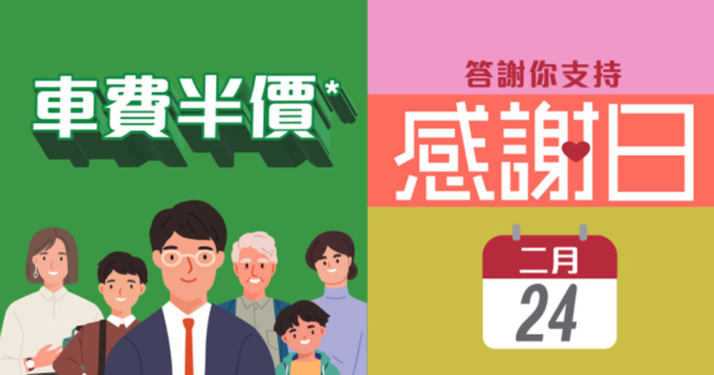 港鐵於2月24日元宵節將推出半價車費優惠,市民使用八達通乘搭港鐵、輕鐵及港鐵巴士,或以二維碼乘搭港鐵重鐵網絡的車程,即自動享有車費半價優惠;以感應式信用卡或扣帳卡付費則不可享用優惠。長者及樂悠咭持有人本地車程$1,過境車程半價。半價優惠包括當日來往羅湖及落馬洲站,亦可與轉乘優惠、特惠站優惠及全月通連接車程七五折優惠同時使用,惟優惠不適用於乘坐東鐵線頭等額外費用、機場快線及港鐵接駁巴士。當日港鐵會加開近370班車,方便市民外出歡度元宵。【優惠詳情】