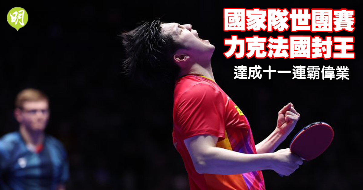 世界乒乓球團體錦標賽今晚(25日)煞科,國家隊在男團決賽以場數3:0輕取法國隊,達成十一連霸偉業,亦是連續六屆包辦世界賽男、女團冠軍。