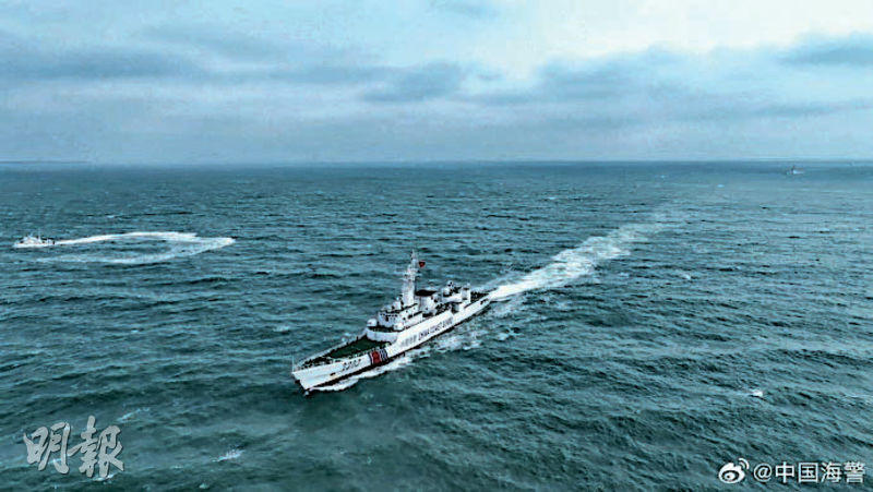 【明報專訊】福建海警組織艦艇編隊前天在金門附近海域開展執法巡查,隨後發布現場執法圖,圖中大陸海警艦艇與金門島和台灣海巡署艦艇「同框」,外界認為陸方有意釋放信號宣示主權、警告台灣當局。