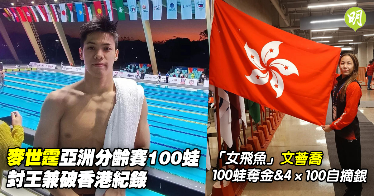 游泳|麥世霆亞洲分齡賽100蛙封王兼破香港紀錄 「女飛魚」文薈喬摘金銀 (15:26)