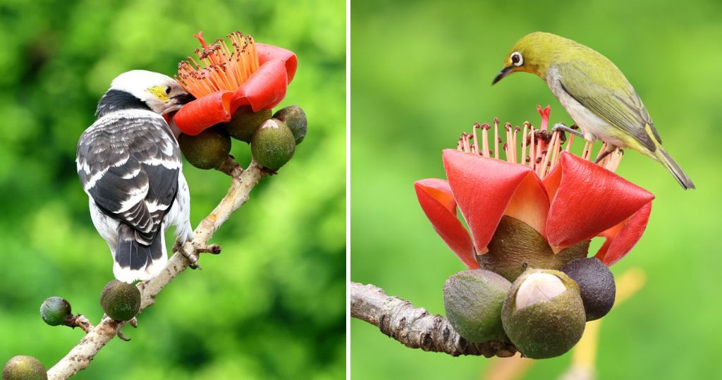 「紅棉盛放,天氣暖洋洋」,近日本港街頭可見木棉開花,令攝影愛好者Ringo Choi想起一代巨星羅文的歌曲,並在facebook分享他於馬鞍山、顯徑、海洋公園外等地點拍攝木棉開花的作品,花旁更有相思、紅嘴藍鵲及白頭鵯等多名「座上客」,品嘗甜美花蜜。