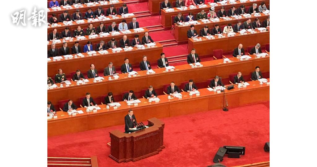 主持大會的全國人大常委會委員長趙樂際表示,應出席代表2956人,今天會議2872人,缺席84人。國家主席習近平等國家領導人出席。(明報記者)