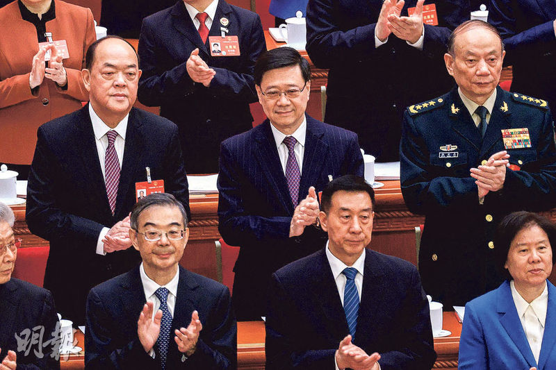 特首李家超昨日在北京人民大會堂列席開幕式,之後見本港傳媒,表示對報告提到支持香港發展經濟、改善民生感到鼓舞。港區全國人大代表團長馬逢國認為報告談及香港部分的內容,與中央過去在不同重要場合所述高度一致,即貫徹一國兩制,強調是長期國策。人大常委李慧琼提到常委會未來將有支持民營企業、促進外商投資的法例。她早前亦拜託有關旅遊當局,希望推出方便外國人來華旅遊、生活、投資的措施,高興見到今次報告有正面回應,相信好快會推出。