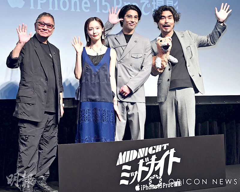 【明報專訊】改編自手塚治虫同名漫畫的短片《午夜的士》(Midnight),由《忍者之家》賀來賢人主演及《要聽神明的話》三池崇史執導,昨日在Apple Japan的YouTube頻道上架。三池崇史率領賀來賢人、《女神探福爾摩斯》小澤征悅及《鎌倉殿的13人》加藤小夏現身東京記者會。《午夜的士》以iPhone 15拍攝及製作,講述的士司機賀來賢人,在東京遇上被追捕的女貨車司機,決定利用改裝過的士,協助女方逃亡。賀來賢人表示能與三池崇史合作,而且用iPhone拍攝手塚治虫作品,可說一次過達成三大夢想,故甫聽到拍攝計劃即答應演出,還大呼興奮。