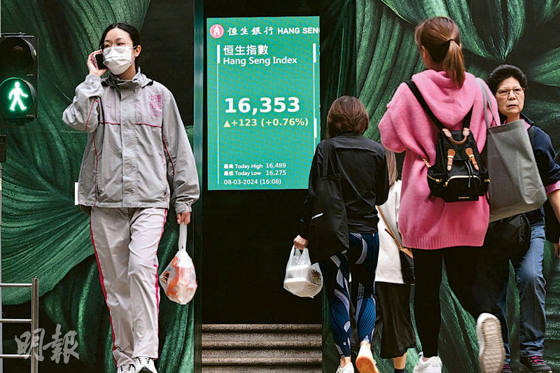 【明報專訊】市場憧憬美國加快減息,亞洲股市普遍做好。恒指早段升最多259點,逼近16,500點,之後升幅收窄,收報16,353點,升123點,中海油(0883)連升3日兼見12年新高及友邦保險(1299)做好帶動恒指升51點,國指及科指均升約0.7%。全周計,恒指累跌1.4%,且連跌兩周,國指及科指累計分別跌約1.2%及2.9%。分析員指大市持續反覆,觀望氣氛轉濃,50日線即16,158點於下周或將受到考驗。