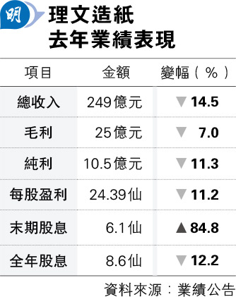 理文造紙增派末期息 下半年業務改善
