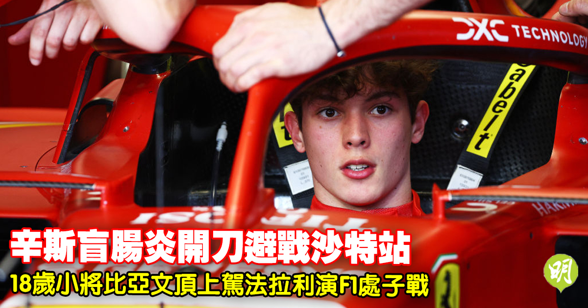 F1|辛斯盲腸炎開刀避戰沙特站 18歲小將比亞文頂上駕法拉利演F1處子戰 (22:50)