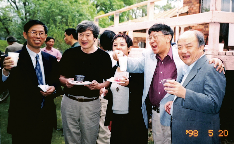 在我看來,金庸走向世界的漫長歷程中,這兩個學術會議很重要,代表了國外學界對金庸的接納。必須略為修正的是,上面提及的會議時間,是起點而非全部。我手頭剛好有一張美國會議期間餐敘的照片,顯示時間是1998年5月20日。不說遠處綽約的人影,正面清晰的5個人,從右往左,分別是錢理群、李澤厚、劉禾、李陀和我。那時大家都還年輕,即便年紀最大的李澤厚先生,也都那麼生氣勃勃,笑容可掬。