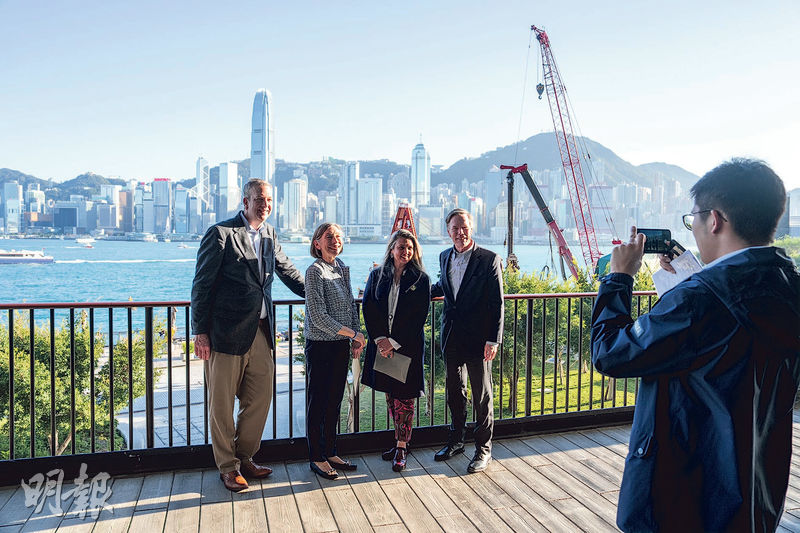 【明報專訊】美國駐華大使伯恩斯(Nicholas Burns)在無事先公布下訪港,昨先後到外國記者會及M+博物館,是他2022年駐華後外界所知首次訪港。他在M+博物館期間,在館長華安雅講解下參觀展出中國近代藝術品的希克展廳,並與美國駐港澳總領事梅儒瑞等在維港景色下合照。