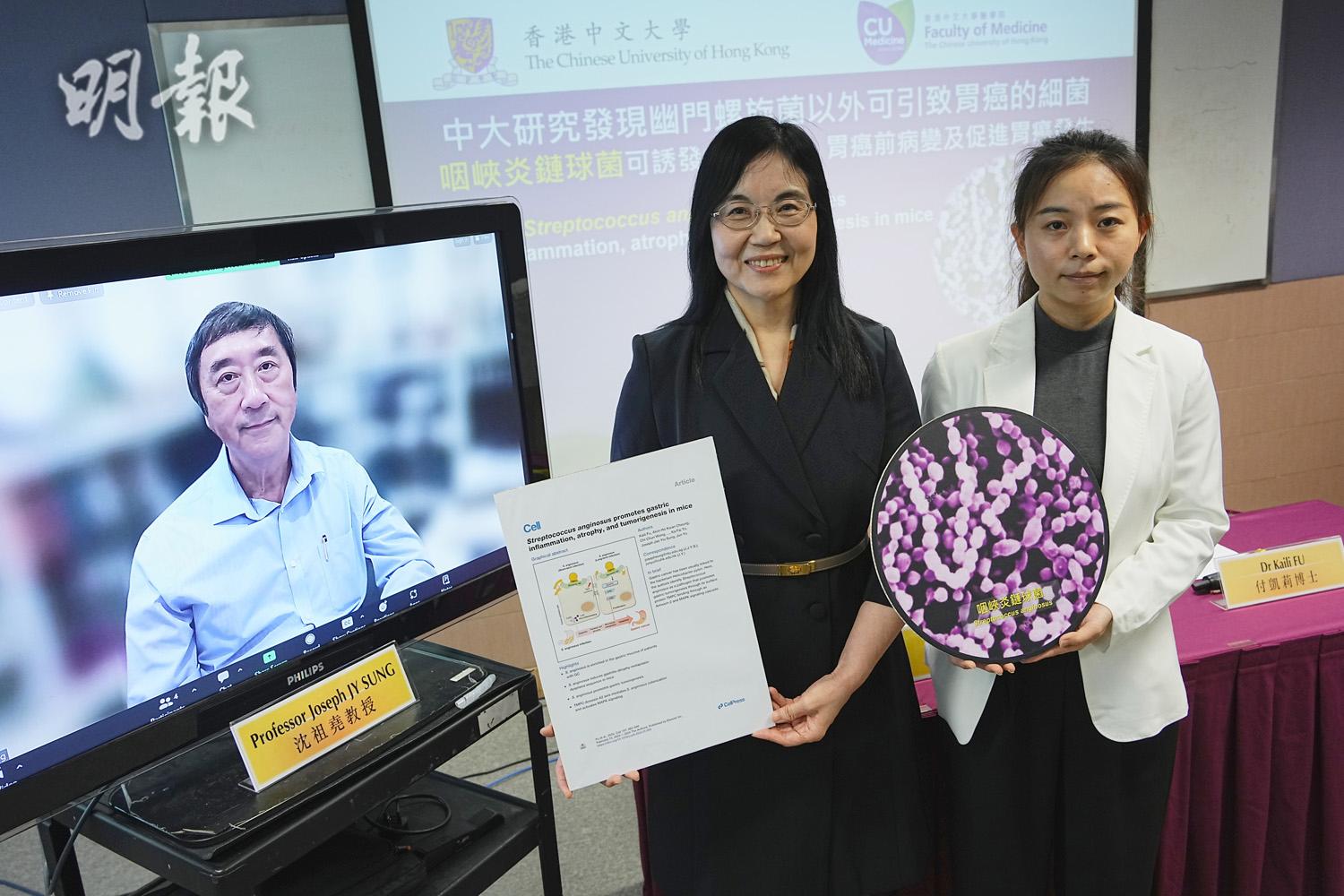 胃癌屬香港第六大癌症,「幽門螺旋菌」被認為是胃癌的主要風險因素,惟僅有1%至3%感染者會患上胃癌。中大醫學院最新研究發現,「咽峽炎鏈球菌」可引致胃癌,並利用實驗小鼠確立其致癌機制。團隊表示,「咽峽炎鏈球菌」感染較幽門螺旋菌更普遍,且動物實驗顯示倘同時感染兩種細菌,患胃癌風險將顯着提高。