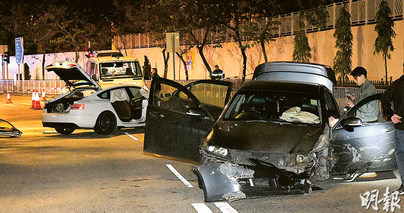 涉事平治左前門被撞甩,後座遺下一個鐵槌及一灘血迹。兩輛兇徒乘坐的私家車,在約100米外青山公路與海榮路交界橫亘路中,損毁嚴重,車輪飛脫,路旁鐵欄亦被撞毁,地上遺下一把刀及一隻平治車門。警方其後於海華路發現另一涉案私家車,3車均掛假牌,案件列作傷人及行使虛假文書。