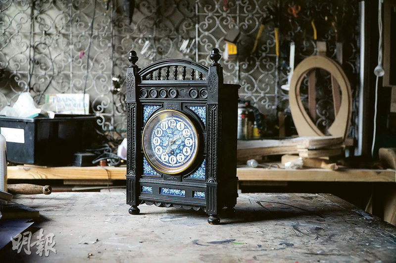 到訪Piran的工作室時,看到他工作桌上正在修復的木製枱鐘。他說:「這是一座由英國品牌Liberty於1880年左右製作的維多利亞風格枱鐘,以黑檀木製成,而我的工作主要是修復其外殼。」維多利亞風格枱鐘大都經精心雕琢,綴有大量裝飾,並用上優質木材如黑檀,以及黃銅、大理石等貴價素材製作,以複雜的雕刻、木工車旋(wood turning)等手藝來製作鐘殼上的華麗裝飾。