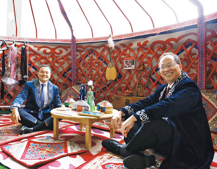 【明報專訊】農曆新年過咗一排,今個星期五(22日)就係哈薩克斯坦嘅納吾熱孜節(Nauryz),即係當地嘅新年。浸大校園噚日有慶祝活動,校長衞炳江著上哈薩克斯坦嘅傳統服飾,又同哈薩克斯坦駐港總領事Almas Seitakynov一齊喺傳統帳幕入面傾偈,校方希望師生「猶如置身數千公里外的哈薩克斯坦」。