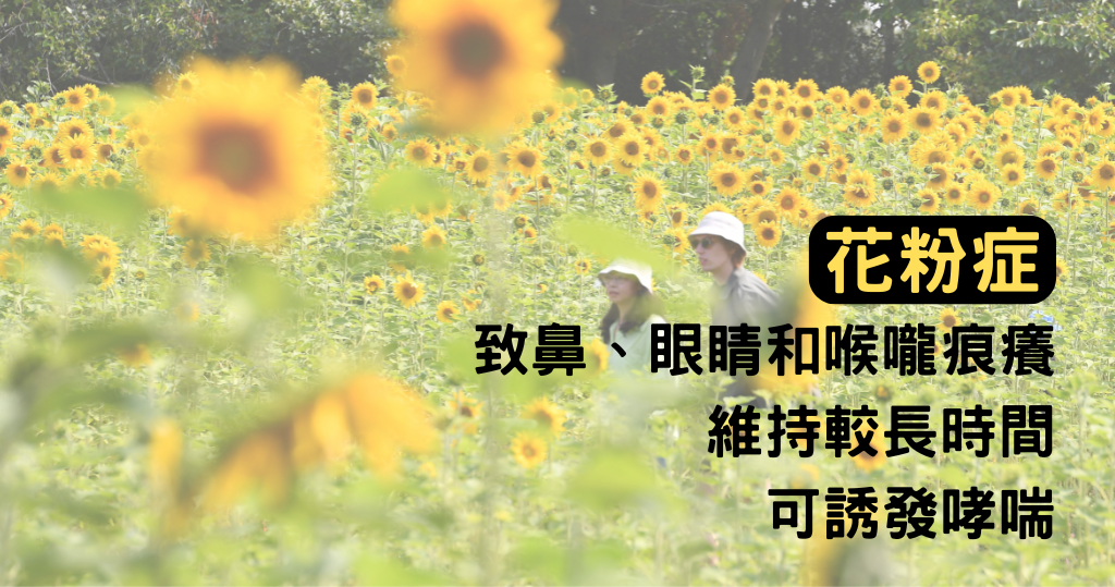 .花粉症主要引致鼻、眼睛和喉嚨痕癢,維持較長時間,同時可誘發哮喘