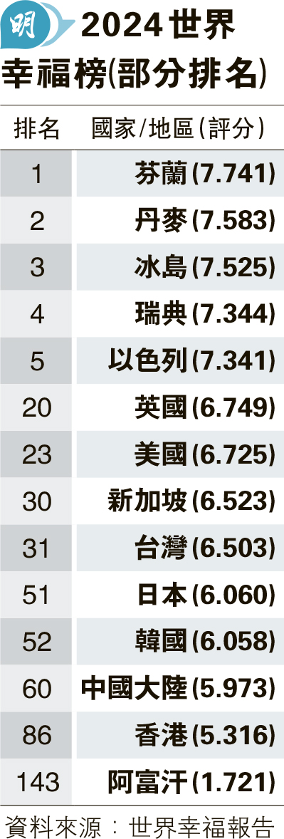 幸福感排名榜 港連跌3年 報告:歐美澳紐年輕人快樂不如上代