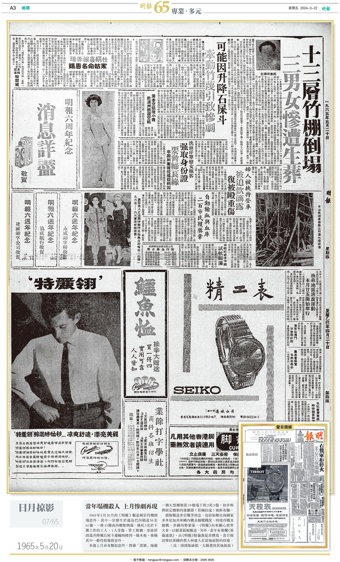 1965年5月20日:當年塌棚殺人 上月慘劇再現