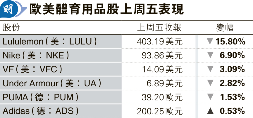 道指上周五挫305點 消費體育用品股受壓