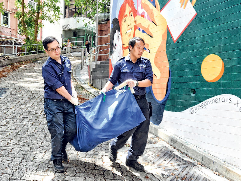 【明報專訊】一隻唐狗昨早被發現倒斃於灣仔一單位,狗主懷疑牠遭落毒身亡。警方接報到場調查,了解該狗日常行經路線。愛護動物協會人員將唐狗遺體帶走,死因待化驗確認。