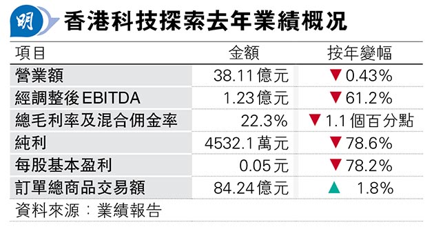 【明報專訊】經營HKTVmall的香港科技探索(1137)公布,去年純利為4532.1萬元,按年大跌78.6%,每股基本盈利0.05元,不派末期息。集團披露,為達至2026年整體訂單總商品交易額(GMV)120億元的目標,將大幅增加廣告開支和市場推廣成本,但由於GMV增速放緩,料目標有可能需要延遲。