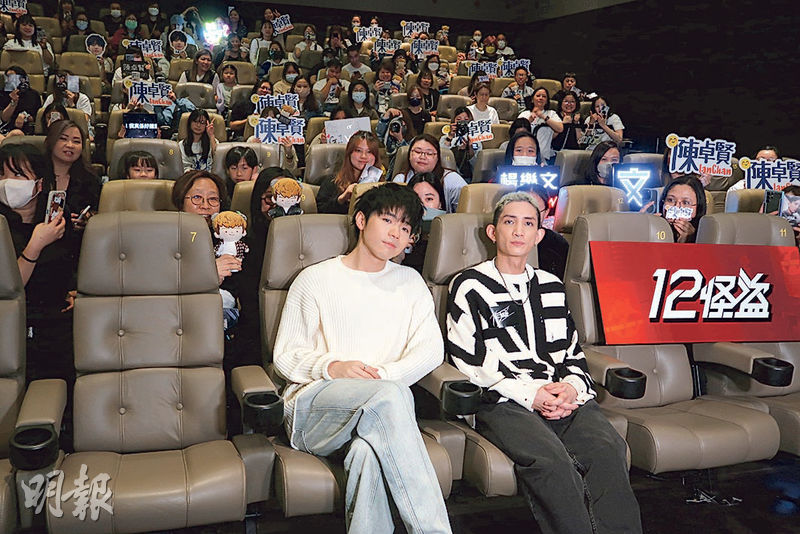 【明報專訊】MIRROR首部全員主演電影《12怪盜》昨日開畫,12子分隊謝票,隊長楊樂文(Lokman)與陳卓賢(Ian)是其中一隊,昨日先到太古城戲院謝票,粉絲高舉燈牌歡迎偶像進場。對於第一日謝票,Lokman說:「集齊12人拍部電影終於上映,又開心又搞笑。」Ian反而擔心粉絲馬不停蹄出席他們的謝票場會累,「擔心粉絲攰,要食嘢飲水,唔好咁頻撲」。