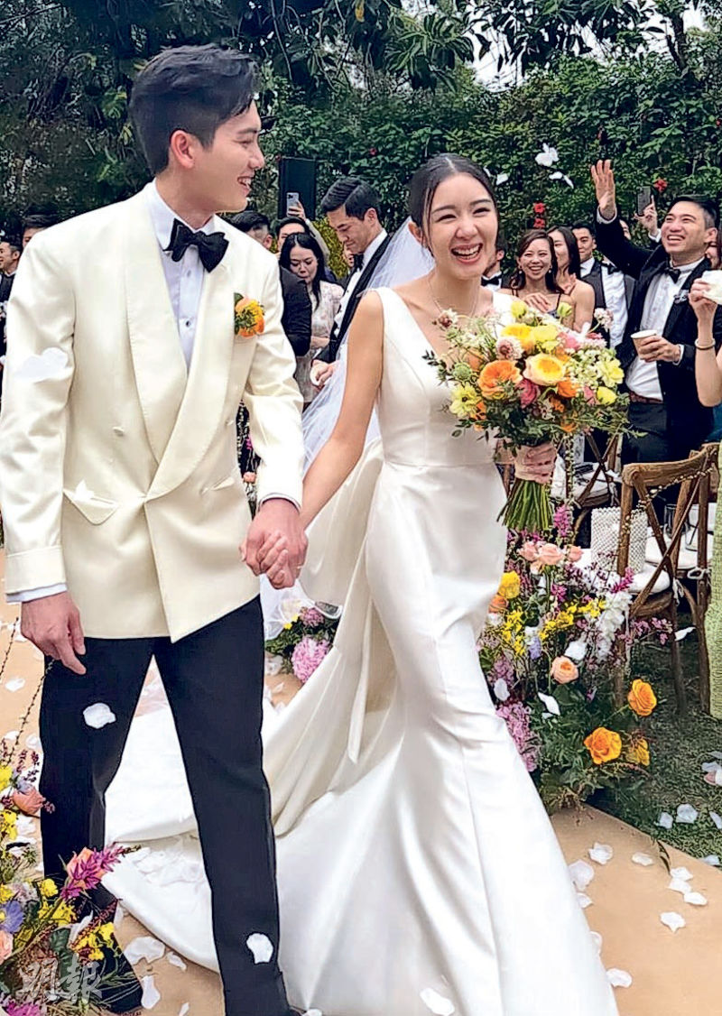 【明報專訊】麥明詩與盛勁為的婚禮連辦4場,繼早前圍村盆菜宴、遊艇會及酒店婚宴後,前日一對新人於戶外舉行露天婚禮及晚宴。