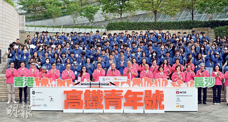「高鐵青年號」活動由龍傳基金與香港青年協會合辦,昨安排300名學生乘高鐵北上長沙,展開4日3夜湖湘文化之旅,行程包括體驗沉浸式劇場,參觀文創產業園、嶽麓書院及橘子洲等歷史名勝,並會考察工程機械製造和農業科技的發展。