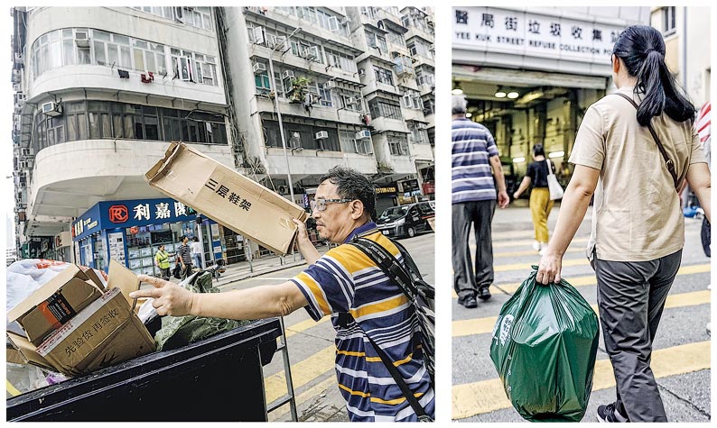 【明報專訊】垃圾徵費「先行先試」計劃昨開展,深水埗北河街15及17號「三無大廈」,有住戶稱已收到指定垃圾袋並開始使用,惟試行前無政府人員向住戶宣傳計劃,擔心有住戶會非法棄置垃圾。另有住戶指仍未收到袋,且嫌指定袋容量不足,需繼續使用普通袋。