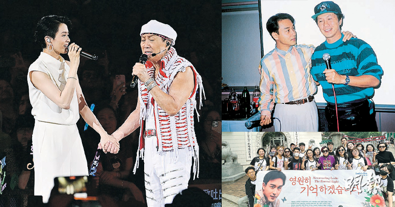 【明報專訊】歌神許冠傑(Sam)一連3場《許冠傑最緊要好玩演唱會2024》前晚假紅館圓滿結束,尾場特別嘉賓是去年因感染新冠病毒未能演出的梁詠琪,兩人終同台拖手繞場合唱,梁詠琪被觀眾熱情感動。前日4月1日是Sam好友張國榮(哥哥)逝世21周年,他特別選唱《有誰共鳴》送給哥哥,將最後一句歌詞改為「夜闌靜問哥哥可感應」,以歌聲向故友傳達思念之情。哥哥生前經理人陳淑芬前日與近500名來自不同地方的「哥迷」到寶福山拜祭,之後到澳門紀念展,其間有默哀儀式。