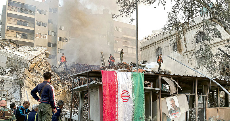 【明報專訊】伊朗駐敘利亞首都大馬士革大使館範圍周一(1日)遭空襲,大使館主樓旁的領事部門建築被夷為平地,最少11死。伊朗革命衛隊表示,死者中7人是革命衛隊成員,包括旗下海外精銳部隊「聖城旅」(Quds Force)在當地的指揮官,是4年多以來被殺的最高級伊朗軍官。以色列沒有公開認責,但《紐約時報》引述4名以國官員承認是以方施襲。大使館等同所屬國領土,今次襲擊被視為是自去年10月以哈戰爭爆發來在加沙以外最危險的升級行動。伊朗和敘利亞同指以色列是黑手,伊朗揚言報復。中國等國均譴責襲擊。