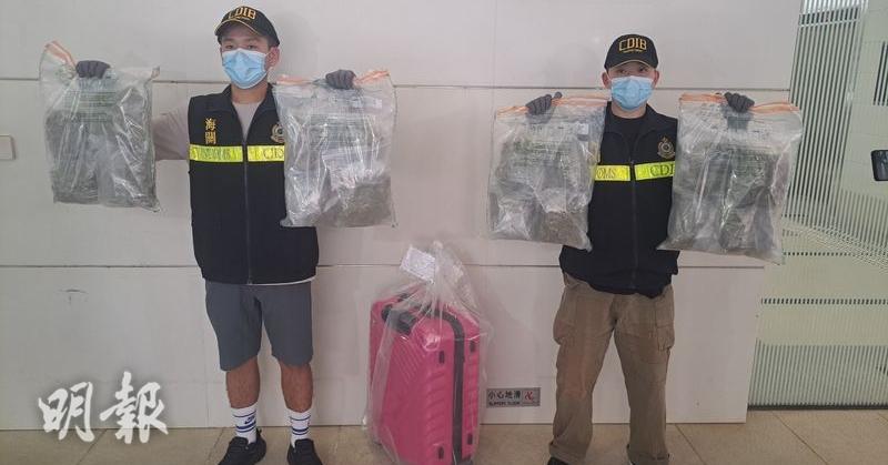 海關昨日(1日)於機場偵破一宗行李販毒案,檢獲超過8公斤懷疑大麻花,估計市值約190萬元,拘捕一名53歲女子。