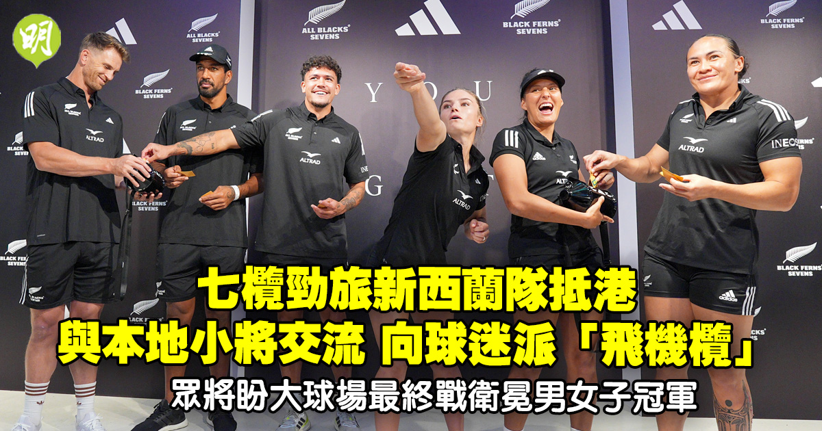 一連3日的國泰/滙豐香港國際七人欖球賽將於周五(5日)假香港大球場上演,各支隊伍已陸續抵港備戰。衛冕的新西蘭男、女子隊共派出6名代表今午(2日)到尖沙咀出席品牌活動,眾人除了向球迷大派「飛機欖」,亦跟3名小球員互動,盡示親民一面。他們更異口同聲表示,期望於大球場的「最後探戈」再次奪冠。