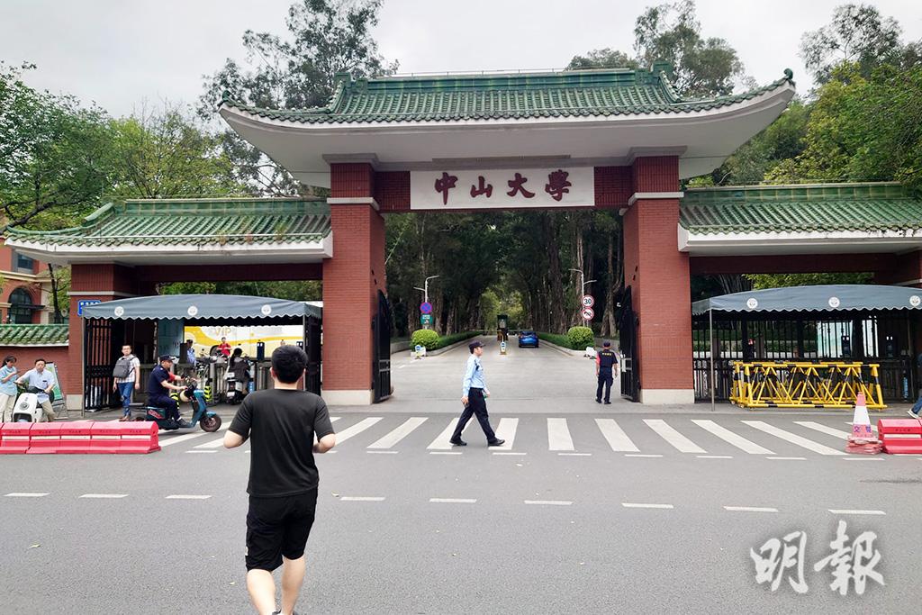 台灣前總統馬英九今日(3日)下午抵達廣州中山大學,校園內大範圍拉起封鎖線,外圍有「校事活動區域,請繞行」的牌子,每隔數米就有便衣人員看守,無關人等禁止進入。