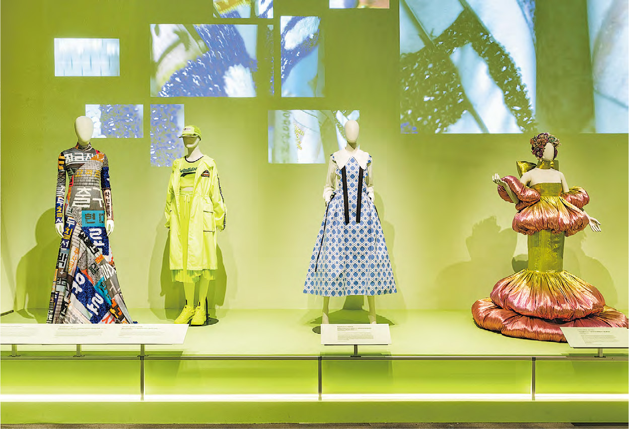 在2021年上線的串流劇《魷魚遊戲》中,粉紅色的警衛運動服跟參賽者的綠色運動服,不但成為當年萬聖夜派對的大熱裝扮,兩套衣服也在展覽中展出。韓國電視劇(K-drama)和韓國電影早在1990年代末開始有策略地發展,其中不能忽略奪得2020年奧斯卡最佳影片的《上流寄生族》,展覽展出電影中的浴室場景,還有兩款完全不同風格的《上流寄生族》海報,透過設計細節攻佔全球市場。