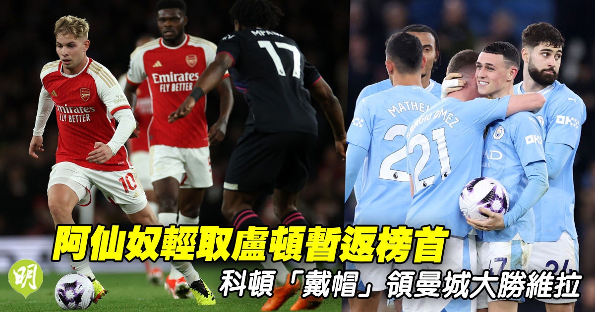 英超︱阿仙奴輕取盧頓暫返榜首 科頓「戴帽」領曼城大勝維拉 (17:05)