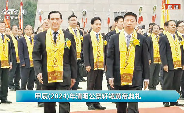 【明報專訊】台灣前總統馬英九率台灣青年訪團,昨在陝西省黃陵縣參加「甲辰(2024)年清明公祭軒轅黃帝典禮」。他致辭提到兩岸同為炎黃子孫,忍不住兩度哽咽。大陸全國人大副委員長彭清華、全國政協副主席蔣作君及國台辦主任宋濤亦參加活動。