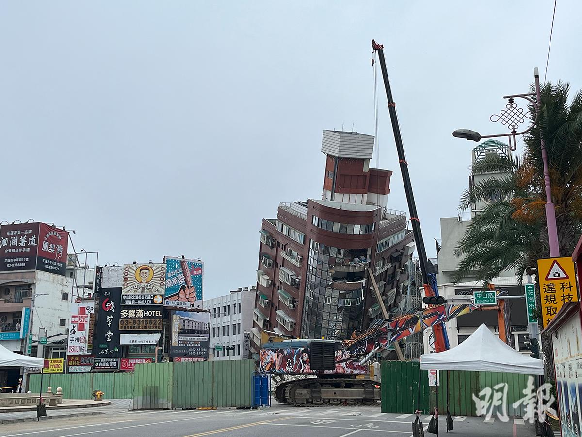 因花蓮地震嚴重傾斜的天王星大樓,今日下午開始拆卸工程。現場政府人員表示,預計需時2星期拆卸整幢大樓,鑑於現場情况,不能容許住戶入內取回個人物品。