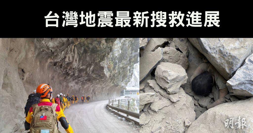 【16:50更新】台灣花蓮7.2級地震發生後第三日,搜救工作仍然繼續。衛福部統計,地震釀最少12死,包括今早在太魯閣步道找到兩名失蹤者已無生命迹象;逾1123人受傷,634人被困、13人失聯。