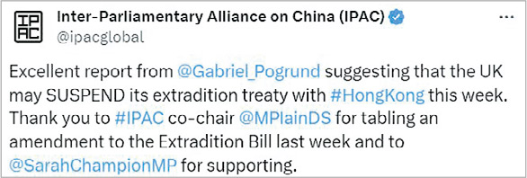 李宇軒:IPAC開會商促各國停引渡、減依賴華