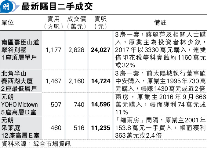 蔣麗萍2828萬購翠谷別墅蝕讓貨