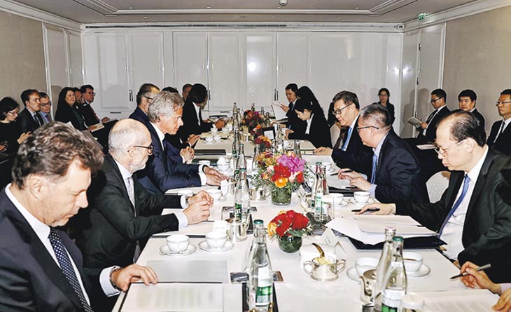 在法國期間,王文濤周日和周一先後會見法中委員會聯合主席兼巴黎銀行董事長樂明瀚、歐萊雅董事長安鞏、空中客車首席執行官(CEO)傅里、達能CEO盛睿安等法國工商界領袖及歐洲汽車製造商聯會(ACEA)主席、雷諾總裁迪梅奧。
