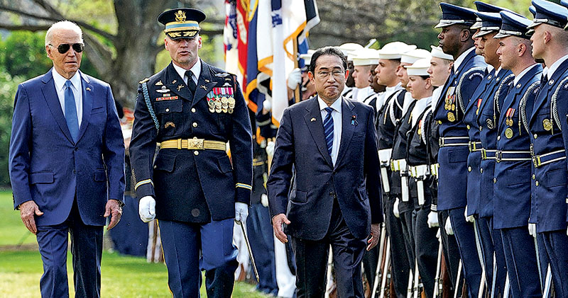 岸田是2015年安倍晉三之後首名對美國國事訪問的日本首相,周三晚獲拜登在白宮設國宴款待。岸田獲國賓級待遇,突顯日美的「全球伙伴關係」,也突顯日本在美國全球戰略,特別是印太地區中的核心地位。