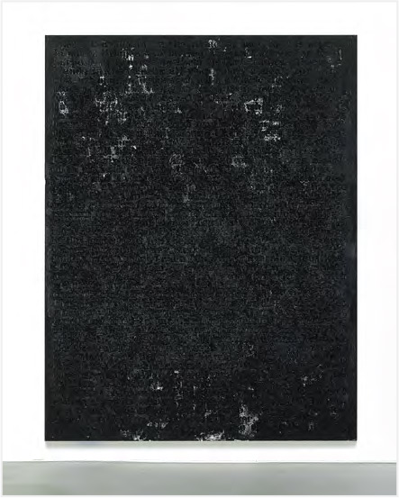 另一個里根去年開展的無題新系列,緣於友人到西安旅行時認識中國傳統拓片,贈予他拓片刻石為紀念品。里根受此啓發,將和紙置於「陌生人」系列作品之上拓印,將「陌生人」本來模擬的文字轉印到和紙上。貫徹「陌生人」和「噪音」的想法,里根繼續探討難以言說、含糊不清的社會狀態。