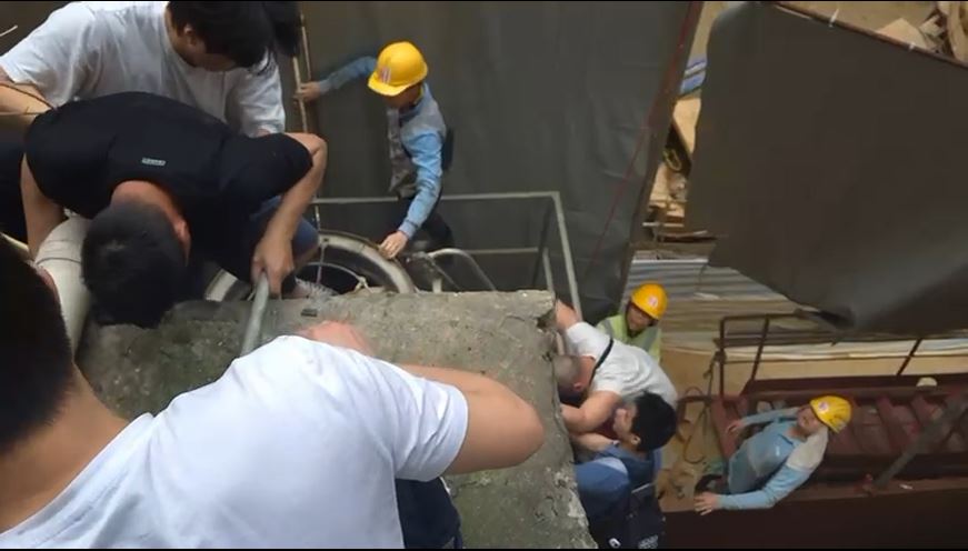 有份救人的地盤工人文先生表示,昨日與7、8名工友剛剛開工,便見到隔壁大廈發生火警,原打算站在一旁觀察,突然見到有些人從大廈走出平台求救。他與工友連忙搬動金屬梯,協助該10多人逃生,當中包括韓國人、東南亞人、亦有兩名歐美人士,還有3名小朋友。文先生形容小朋友「喊到『啡啡』聲」,逃生者亦表現驚慌,「始終突然發生火警,可大可小」,工友則相對淡定。