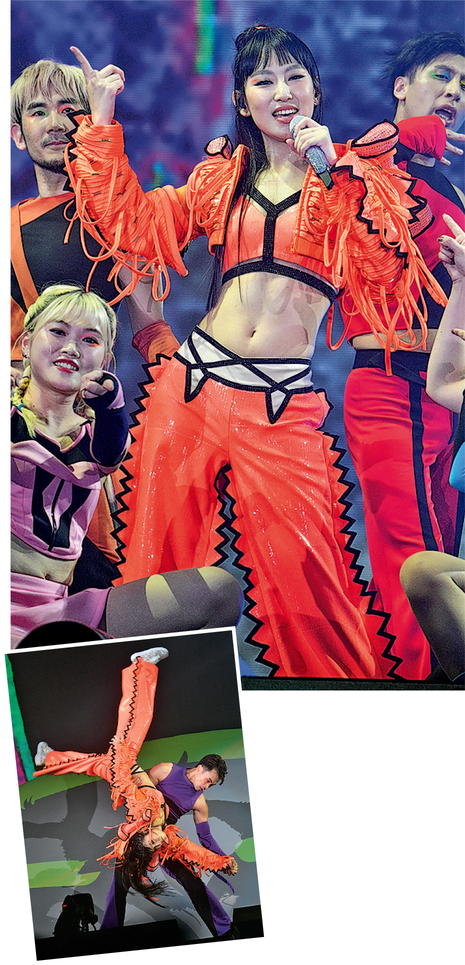 Gigi在快歌環節換上熒光橙露臍裝,medley跳唱連串快歌,更被舞蹈員抱起打後空翻,引全場觀眾尖叫,氣氛high爆。當唱到內地組合牛奶咖啡的《明天你好》,Gigi突然感觸落淚,數度轉身背向觀眾冷靜,待情緒穩定後解釋:「這首歌其實是我小學時聽的,因為無諗過有朝一日可以做到歌手,想將這首歌送畀身邊陪住我的人,同逐漸離我而去的人,好似天上面的爺爺,分道揚鑣的同學、朋友,亦都要好多謝我的屋企人,接受我不開心的情緒,一路鼓勵我,這首歌對我來講很有意義。」