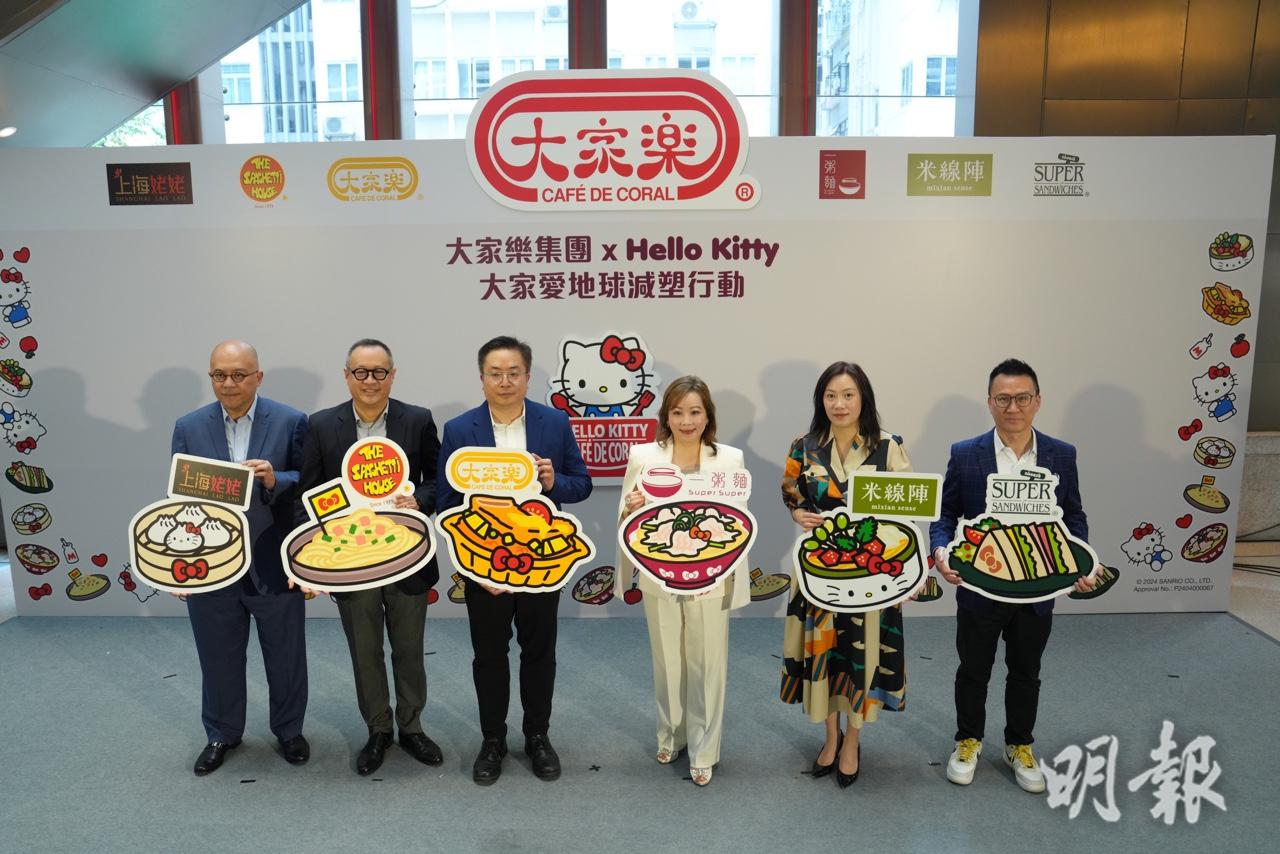 大家樂集團旗下六大餐飲品牌包括大家樂、一粥麵、米線陣、上海姥姥、意粉屋及Oliver’s Super Sandwiches亦會推出「大家愛地球減塑行動」,首度聯乘出道50周年的Sanrio超人氣角色Hello Kitty,攜手推出限量版環保餐具套裝,換完即止。顧客明起可於上述六大餐飲品牌惠顧指定產品,並以35元換購Hello Kitty環保餐具乙套,或以128元換購Hello Kitty環保餐具套裝乙套,包括環保餐具保溫杯及日式布袋。