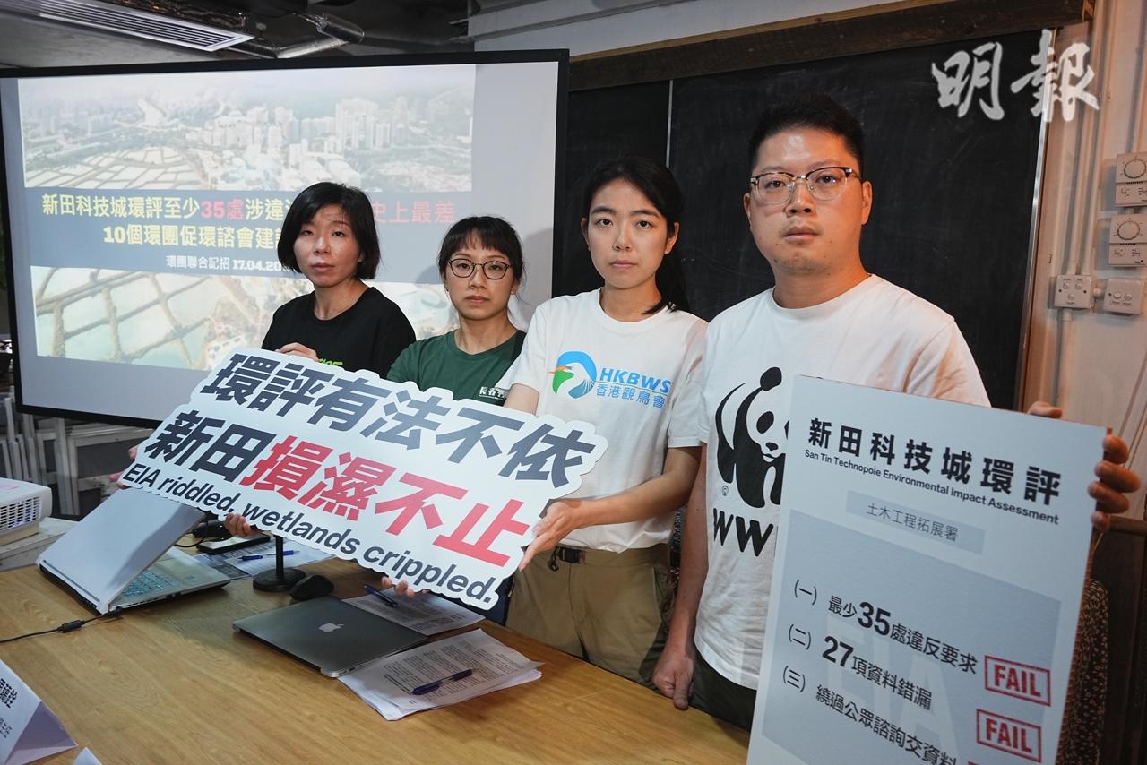 新田科技城環評報告下周一(22日)交環境諮詢委員會「闖關」。綠色和平等10個環保團體今(17日)批評,項目環評報告環評報告最少具27項技術評估和數據錯漏,包括沒有評估對棲息於新田閒置魚塘潛鴨的影響,亦沒有專為歐亞水獺進行基線調查等,批評屬為「史上最差」,而且相關濕地管理計劃書等補償措施至今仍未公開。環團促請環諮會委員「把關」,建議環保署否決環評,並要求當局重新申請環境調查。被問到倘環諮會接納新田科技城環評會否提出司法覆核,香港觀鳥會高級保育主任黃雪媚稱,視乎整個環評程序,現階段不排除提出司法覆核可能性。