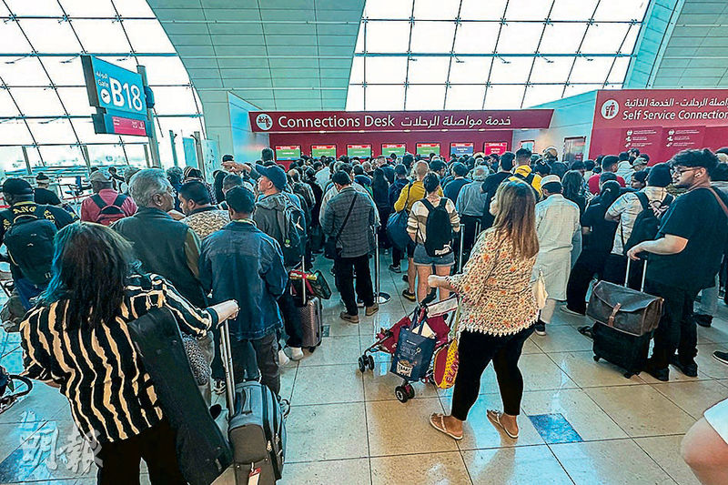 阿聯酋作為沙漠國家,排水系統未必足以應對豪雨,迪拜國際機場周三運作受停機坪積水影響,約300班航班取消。BBC昨引述來自英國南約克郡的旅客安妮.溫(Anne Wing)稱,抵達機場後未有阿聯酋航空職員解釋航班安排,自己跟丈夫和3名子女自中午便再沒吃過東西,只獲提供小盒裝的水,有乘客在沒人當值的航空公司櫃枱鼓譟。與妻子滯留了最少12小時的肯特郡62歲旅客戈爾丁(Andrew Golding)表示旅客們在機場各處席地而睡。阿聯酋航空稱,當地周四早上9時(本港中午1時)恢復辦理登機手續,但機場忙於清理積壓航班。