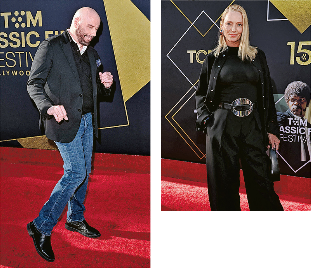 【明報專訊】塔倫天奴(Quentin Tarantino)執導的黑色犯罪喜劇《危險人物》(Pulp Fiction)適逢今年上映30周年紀念,前日為TCM經典電影節揭開序幕,一衆主角包括《Marvel隊長2》森姆積遜(Samuel L. Jackson)、《油脂》尊特拉華特(John Travolta)、《落水狗》夏菲基圖(Harvey Keitel)、《妙不可言》艾力史杜斯(Eric Stoltz)及《標殺令》奧瑪花曼(Uma Thurman)等悉數現身;獨患有腦退化症的布斯韋利士(Bruce Willis)缺席,不過其現任妻子Emma及與前妻兼《人鬼情未了》狄美摩亞(Demi Moore)所生的女兒Tallulah代表出席,後者還戴了寫有父親名字的棒球帽,以示致敬。