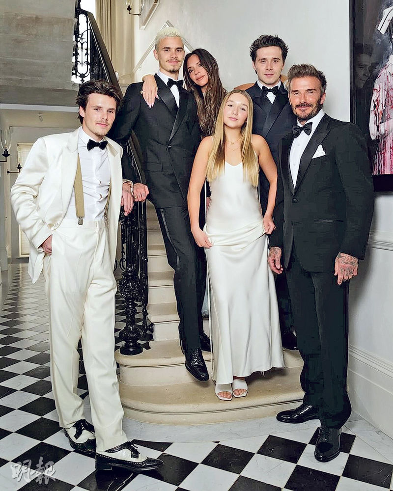 維多利亞生日,碧咸偕同25歲長子布魯克林(Brooklyn Beckham) 、21歲二仔羅密歐(Romeo Beckham)、19歲三仔告魯斯(Cruz Beckham),以及12歲么女哈七(Harper Seven)盛裝打扮,出發前在家中拍攝了全家福上傳到社交平台Instagram。據英媒報道,布魯克林太太兼《變形金剛:殲滅世紀》女星妮歌拉佩斯(Nicola Peltz),由於祖母病重因而缺席。
