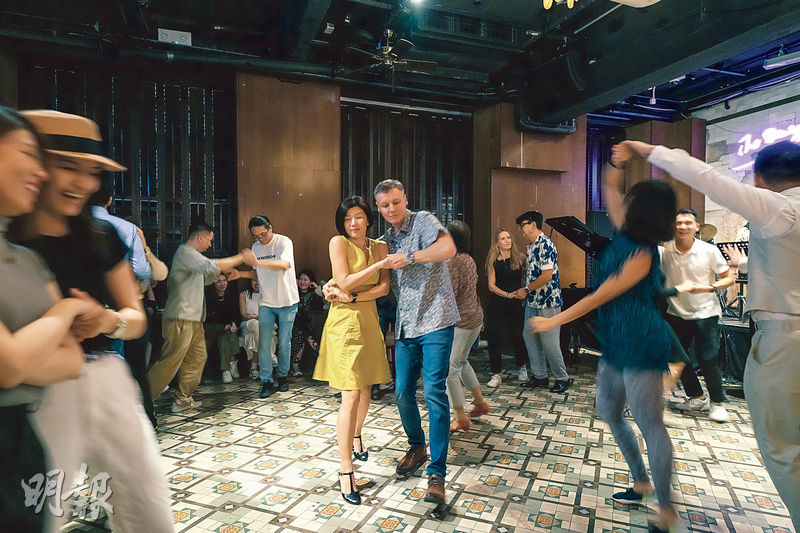 每逢星期三,是Hong Kong Swings的搖擺舞之夜。3小時的活動,先是近45分鐘的新手體驗班,之後是搖擺舞舞會;每月還會邀請爵士樂隊,現場演奏爵士樂曲,就像回到上世紀爵士樂與搖擺舞的流金歲月。或許因為舞會地點位處中環,搞手們又以說英語為主,這裏的參加者多是外國人。有些在舞池跳舞,有些聆聽爵士樂曲,有些則與身邊人熟絡地聊天,舞會的核心是連結不同人,大家都以各自舒服的方式享受這社交場合。